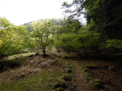 | 左は鹿岳 右が今回の四ツ又山へ 8:05 | 昔は畑だったようなとこを通っていく |
