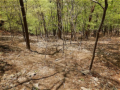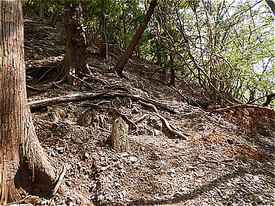 | 更に少し奥に進むと3体目の石像 | 登山道に戻り荒れた道を進む |