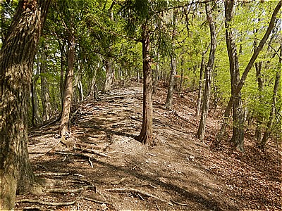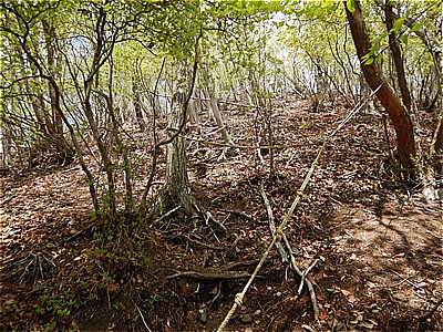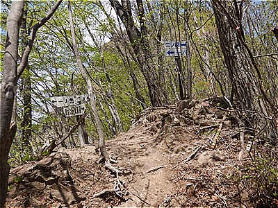 | 日当たりの良い尾根 | T字路を右の山頂方向へ |