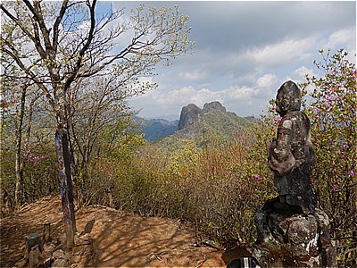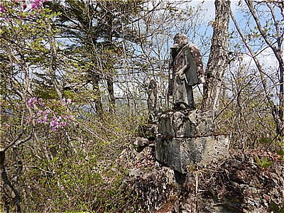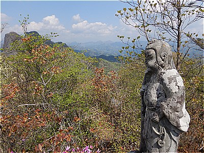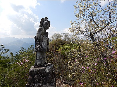 | 山頂の石像 | 雲が多いけど両神山かな |