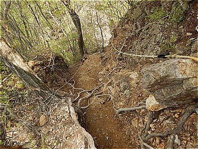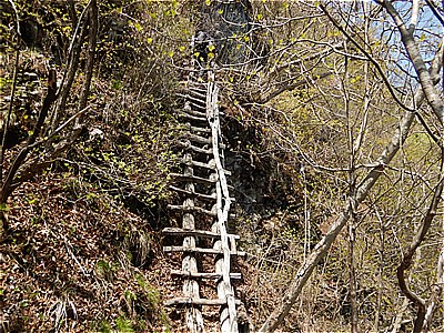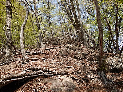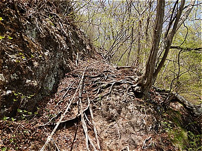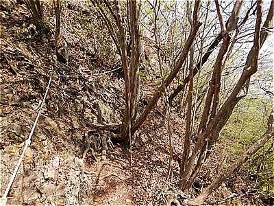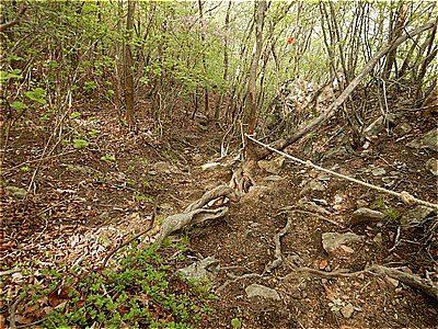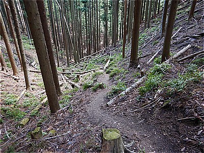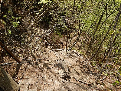| 四ツ又山からどんどん急坂を下る |