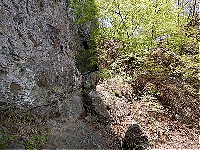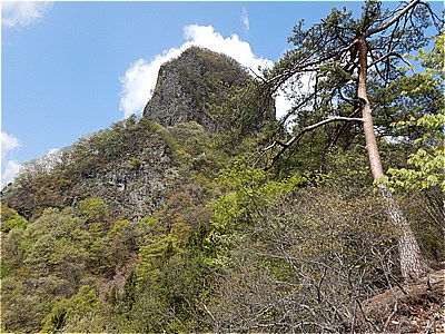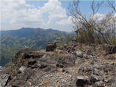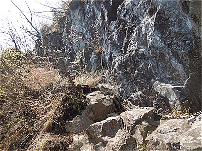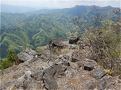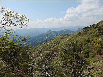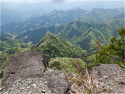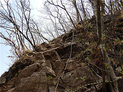 | 鎖のついた岩場の斜面を登る | 登ったとこの眺望 |