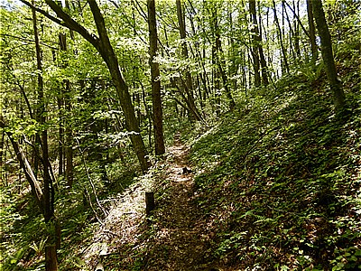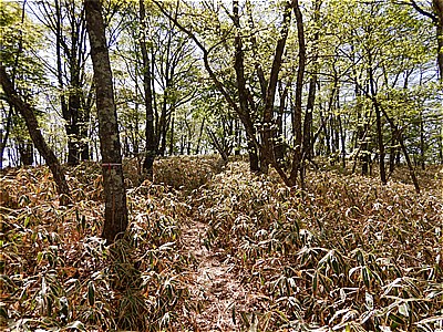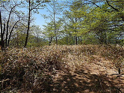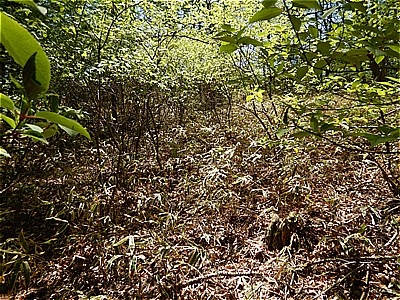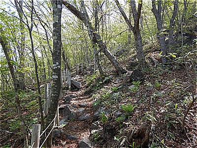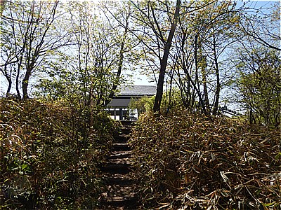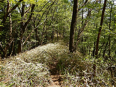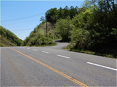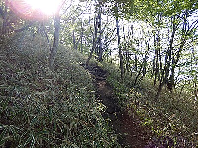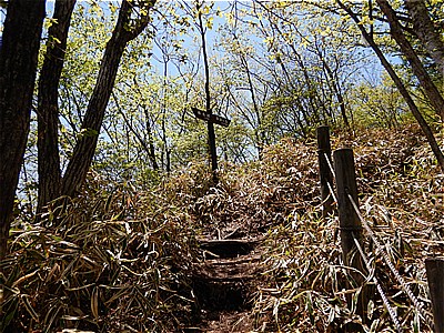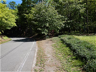 | 頂上付近は結構急で荒れている | ここから車道に出てきました |