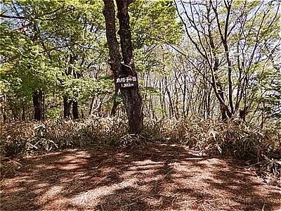| 烏帽子ヶ岳山頂に着いた 9:23 | 山頂の先に絶景スポットがあるらしい 踏み跡を辿る |