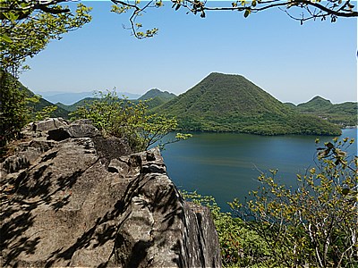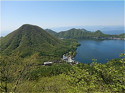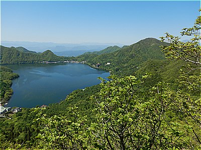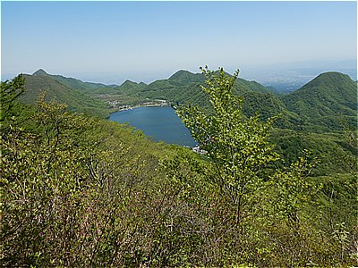 | 中央左は相馬山右は先程の榛名富士 | 榛名富士の右には榛名湖そして右手にこれから進む山々 |