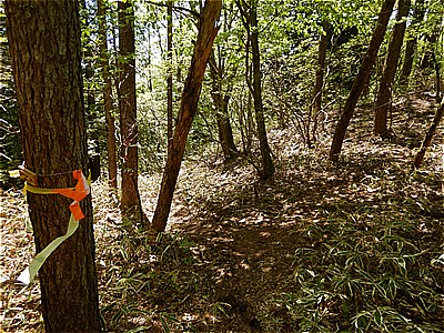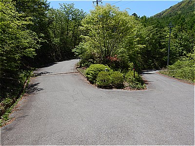 | 登山道らしき道に出た | ここから車道に出てきた |