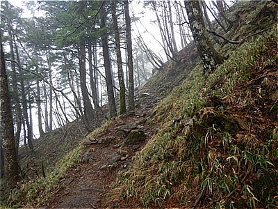 | 割と平坦な尾根に沿った道が続く |