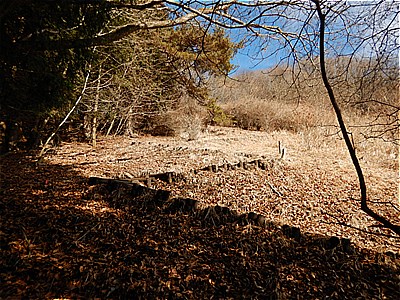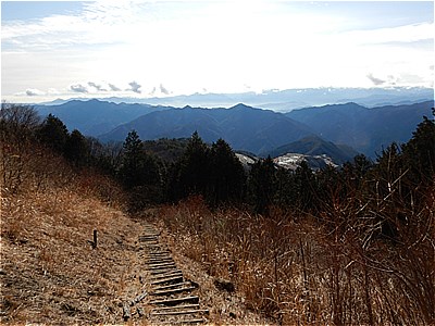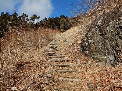 | 階段が続く | 西御荷鉾山西端からの道(正面)と合流 |
