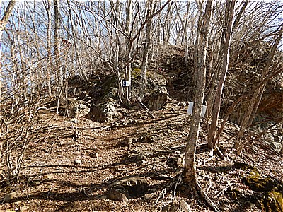 少し先のここが東御荷鉾山登山口 少しわかりにくいし足場悪い |