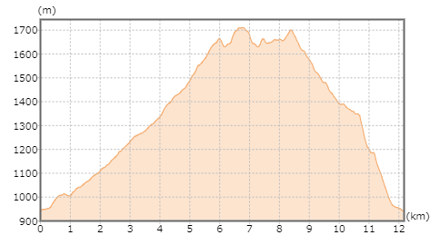 | 今回のコース断面図です。(出典:国土地理院ホームページ) |