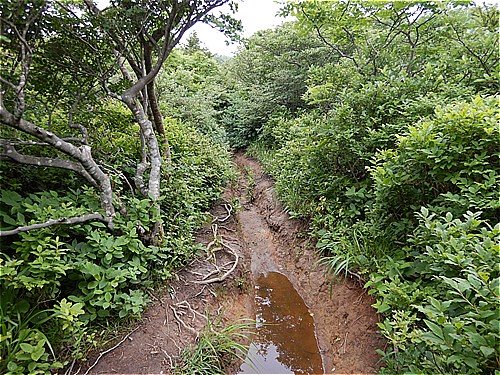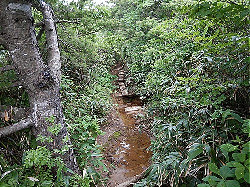 | 先程の鉄山分岐を通り越した辺りから雨がやや降ってきた |