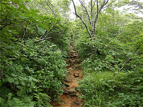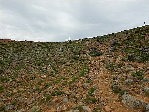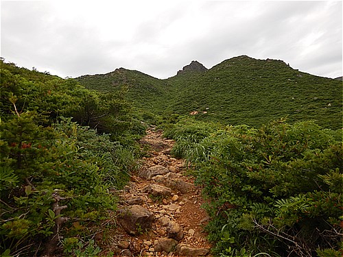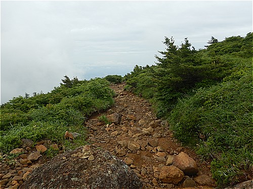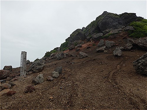 こそれほど危険な箇所もなく山頂付近に着く このまままっすぐ先に見えるのが鉄山避難小屋らしい |