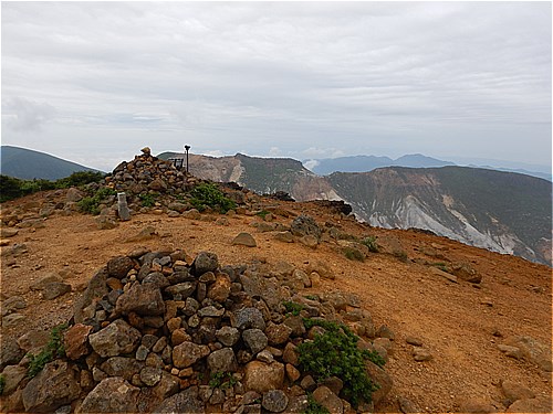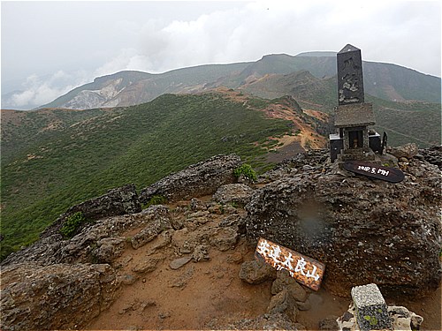 | 9:42 鉄山山頂についた | 火口を監視するカメラがありその付近は立入禁止らしい |