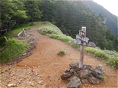 | 7:07 国境平に着いた 湯元方面分岐 |
