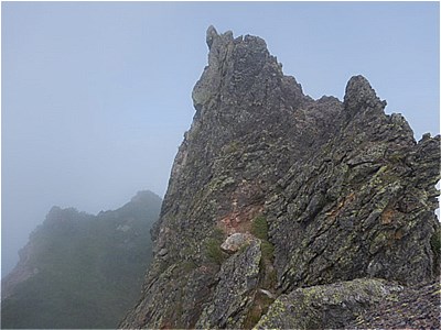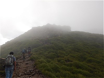 | 霧の中山頂を目指す |