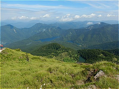| 五色沼を眺めながらお昼にします | 尾根伝いに五色山に戻る |