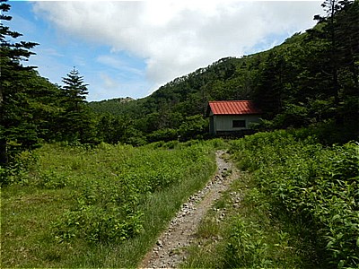 | 一旦下りきった | 避難小屋が見えた 小屋のとこを右に入っていく 10:10 |
