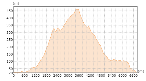 | 今回のコース断面図です。(出典:国土地理院ホームページ) |