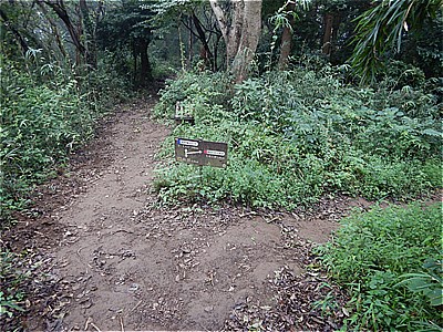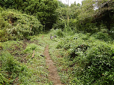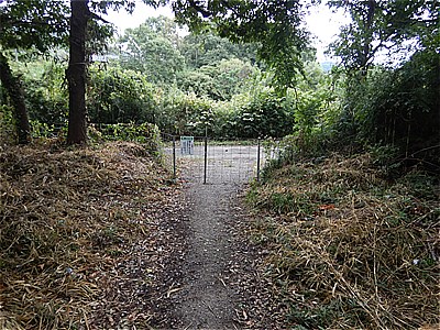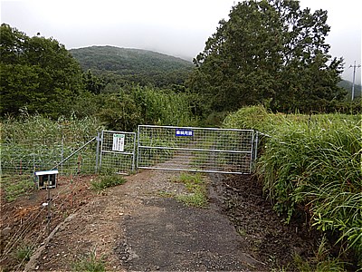 | 動物よけのゲートの小扉を開けて入る | そこからは山道 |