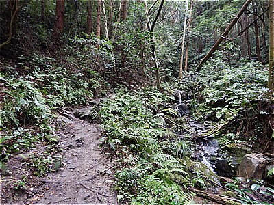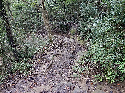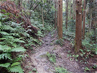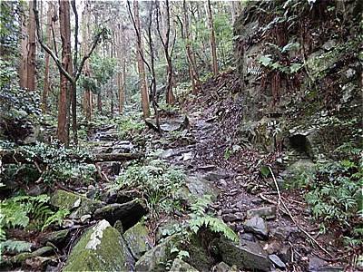 | だんだん登山らしくなる | 雨の降ったせいかジメッとしている |