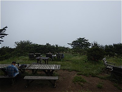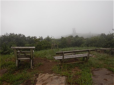 | 10:38 宝篋山山頂についた | ガスで何も見えない |