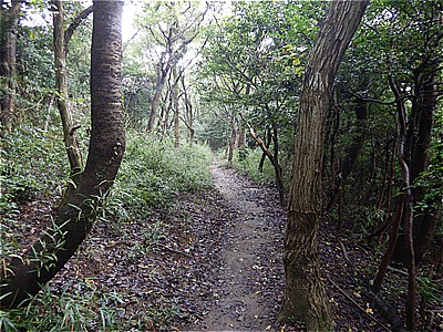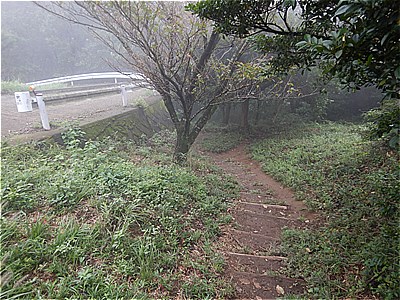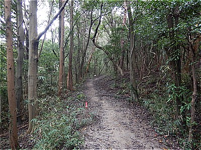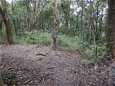 | 下山は舗装道路の脇の小道に入る | 小田城コースにぶつかる 右に |