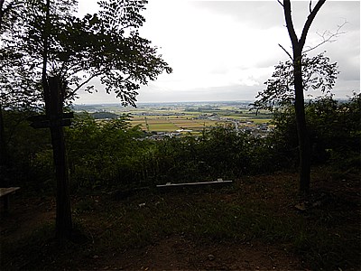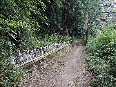| 要害展望所からの眺望 低いのでそれほどでもないです | 再び登山道を下りお地蔵さんの並ぶ空き家の前を通過 |
