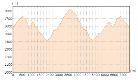 | 今回のコース断面図です。(出典:国土地理院ホームページ) |