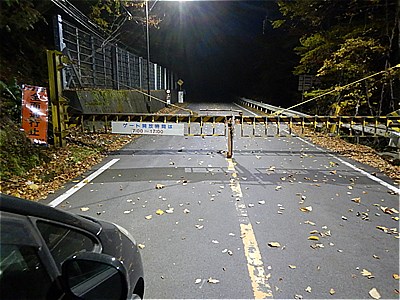 朝5時過ぎに半月山駐車場に続く県道到着 開くのは7時~17時までとなっていてしばしゲート前で待機 |