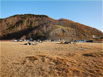 | 駐車場は広く周囲の山がきれいに見える |