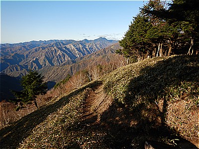 | 展望台を後に半月峠に向かって下っていく |