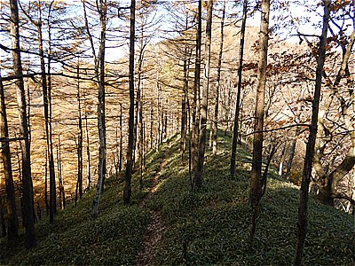 | 明るい広葉樹林が続く |