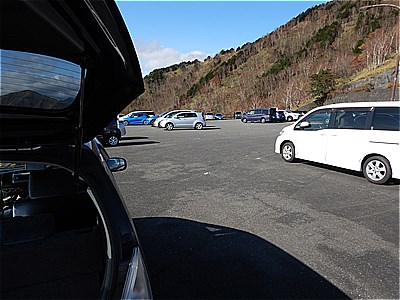 7時丁度にゲートが開き、ようやく半月山駐車場に到着 |
