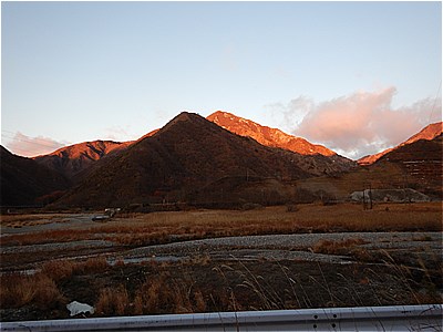 | 河原の向こうに見える山並 |