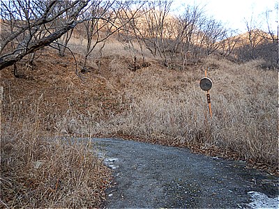 | 6:28 銅親水公園駐車場を出発 | 駐車場を出て左に進むとすぐに工事用車両のみ通行のゲートがある |