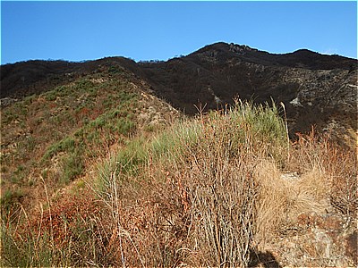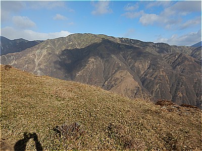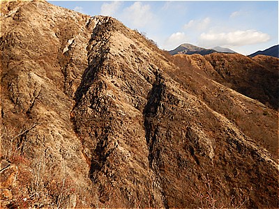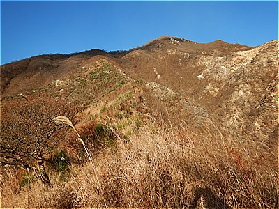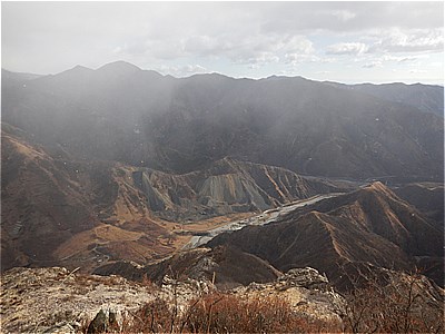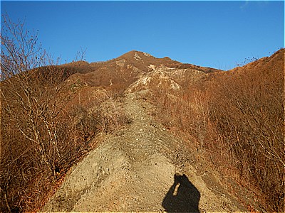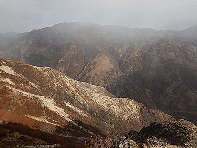 | 右方向の山肌には草木はない |