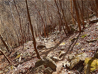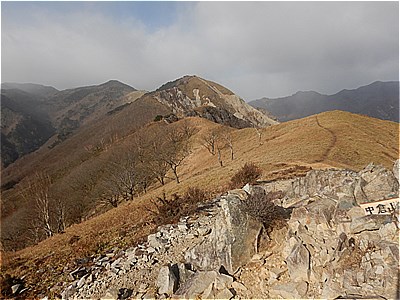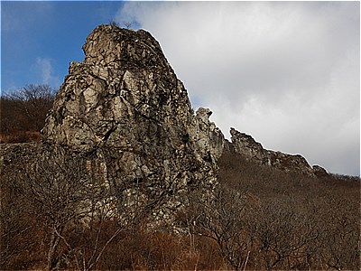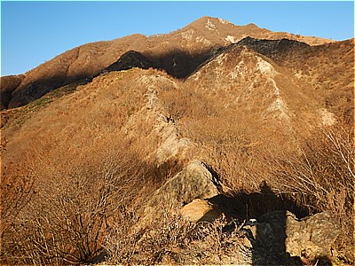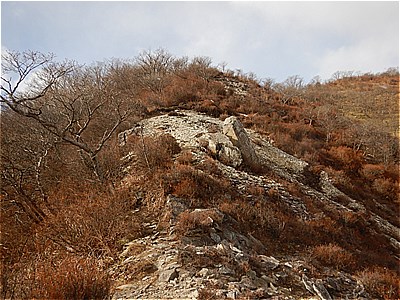 | 大きな岩山の左脇を登る |