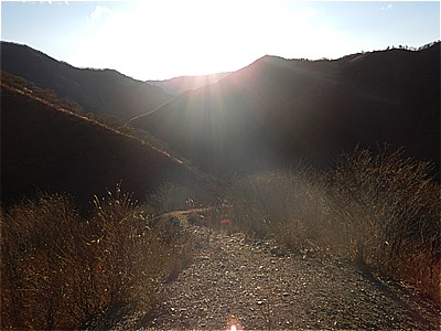 | 後ろを振り返ると朝日が眩しい | 紅葉は終わってるようですがきれいです |