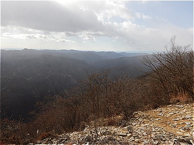 | 尾根筋を抜けると少し広々した登りになった | 最初の展望スポット |