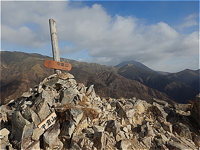 | 9:16 中倉山山頂に着いた | 風が強くて立ってられない |
