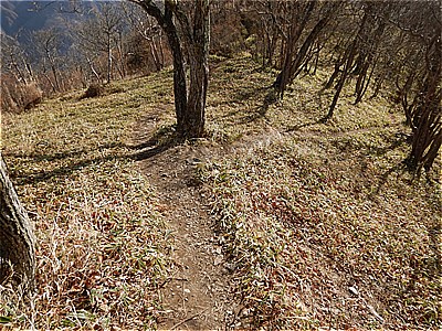 | どんどん下る | 落ち葉とザレた石で滑る |