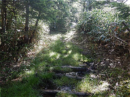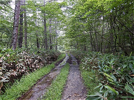 大清水小屋の裏手の林道に入る |