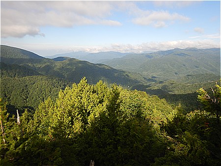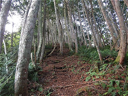 | 山頂の見晴らしは良くない | 物見山山頂から下っていく |