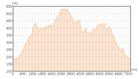 | 今回のコース断面図です。(出典:国土地理院ホームページ) |