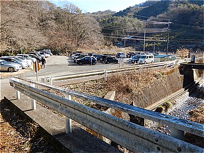 | 10:11 大川戸登山口駐車場出発 | 既に左の写真の駐車場は満車なので橋を渡った路肩に駐車 |