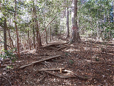 | 結構急で足場が悪いので少し注意が必要な箇所です | 13:35 足尾山頂上 |