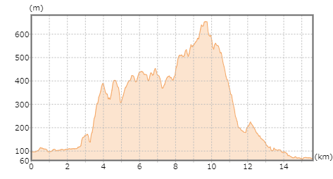 | 今回のコース断面図です。(出典:国土地理院ホームページ) |