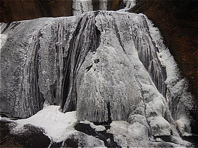| ほぼ凍ってるけど水流はあります | 8:41 第一展望台から吊橋を渡って月居山への登山口に |