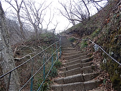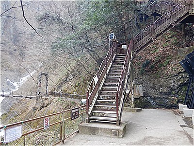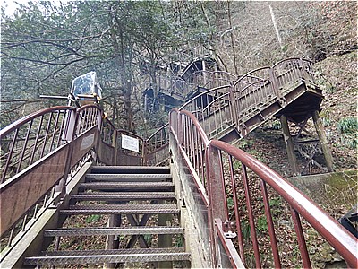 | 石段になりますが相変わらずすごい階段 | 滝の上から眺める |