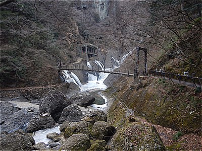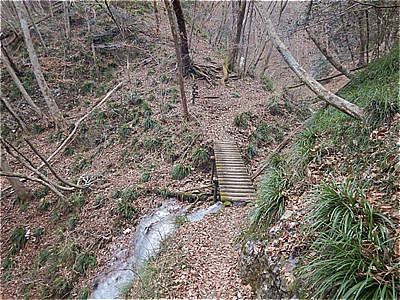 | 振り返ると先程渡ってきた吊橋 | 結構な階段です |